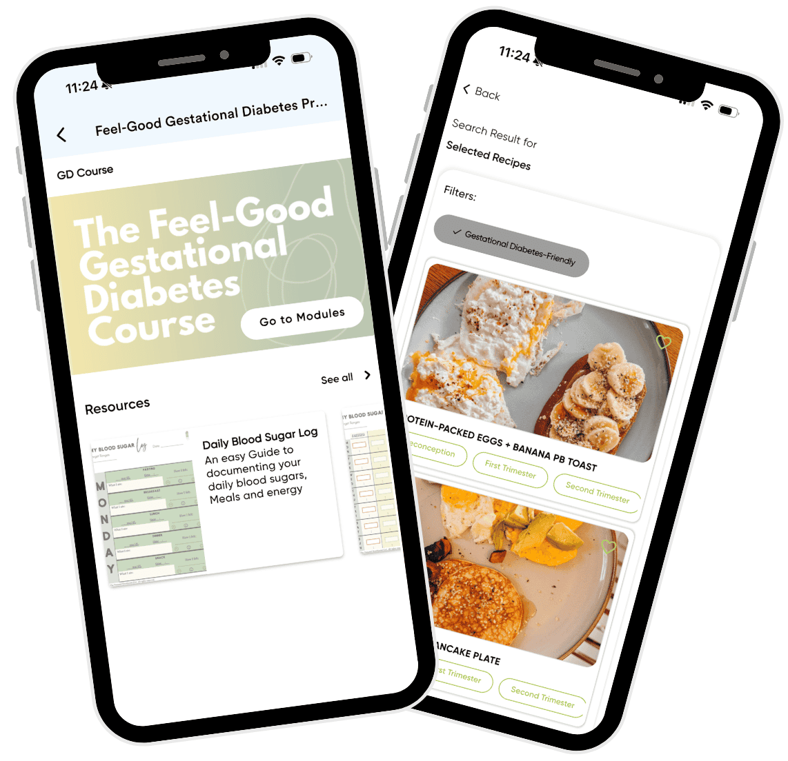 - Under the “Recipes” home screen, click “search recipes” and scroll down to “nutrition related”, select “gestational diabetes friendly.”