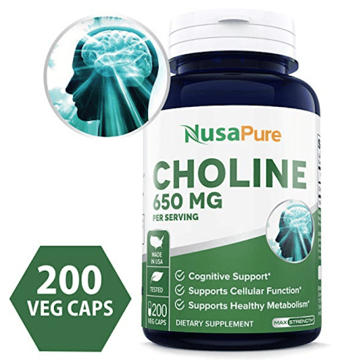 NusaPure Choline contains 650 mg in 2 pills per day. Great for those who are allergic to eggs or do not eat eggs for any other reason.