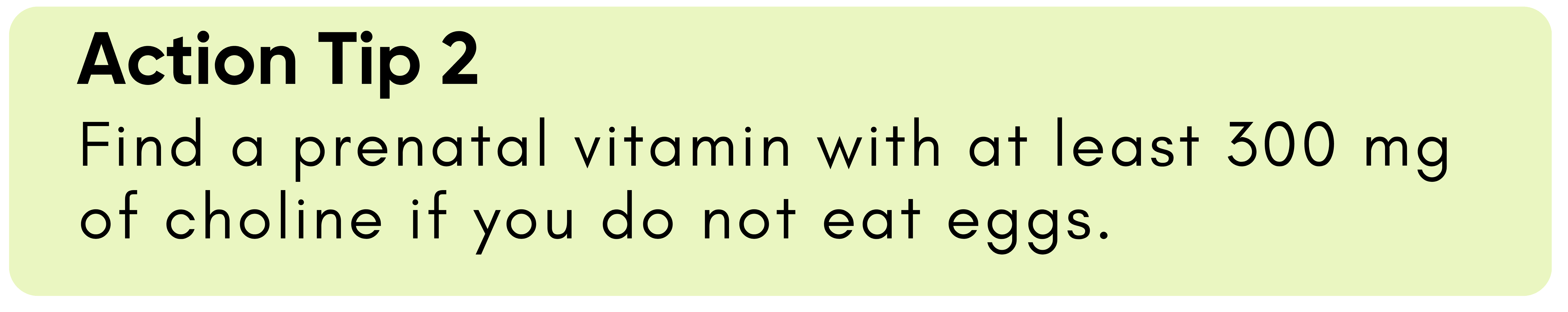During pregnancy, you need a minimum of 450 mg per day, which is why it is important to include choline-rich foods like eggs or other high-choline foods in your diet (3).