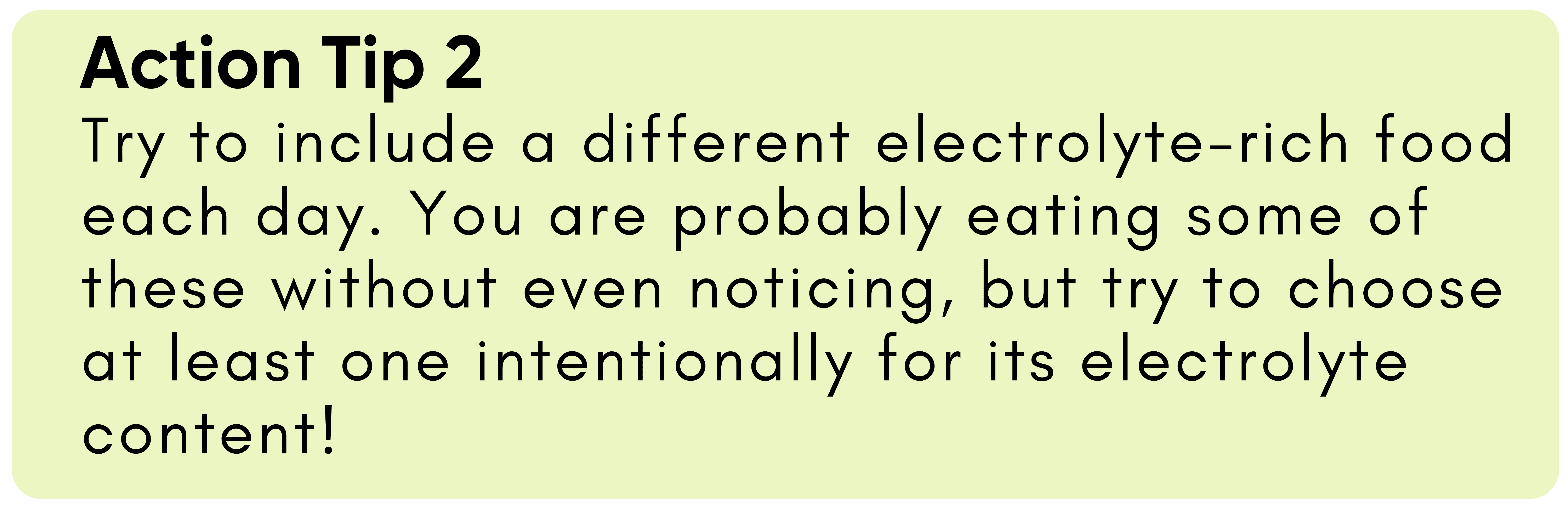 It’s hard to overdo electrolytes from food alone. Excess intake is more likely from multiple electrolyte drinks or powders—limit to no more than two per day unless your healthcare team advises otherwise.