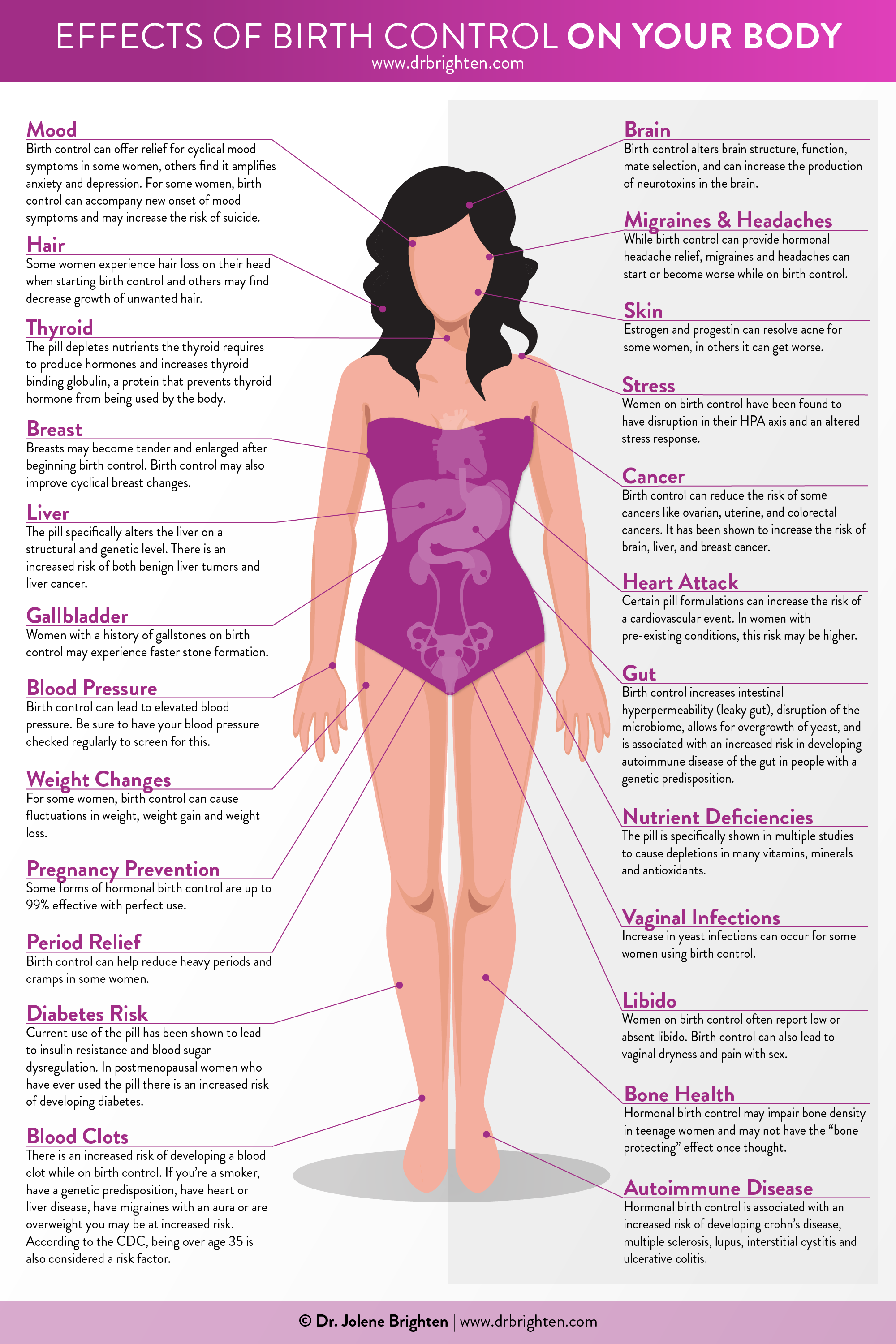 Hormonal birth control pills provide synthetic hormones, which can lead to effects in all systems of the body: