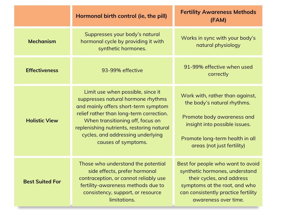 - Hormonal birth control can be helpful for symptom management, but it often masks underlying issues (like PCOS, endometriosis, thyroid disorders, or blood sugar issues) rather than addressing their root causes.