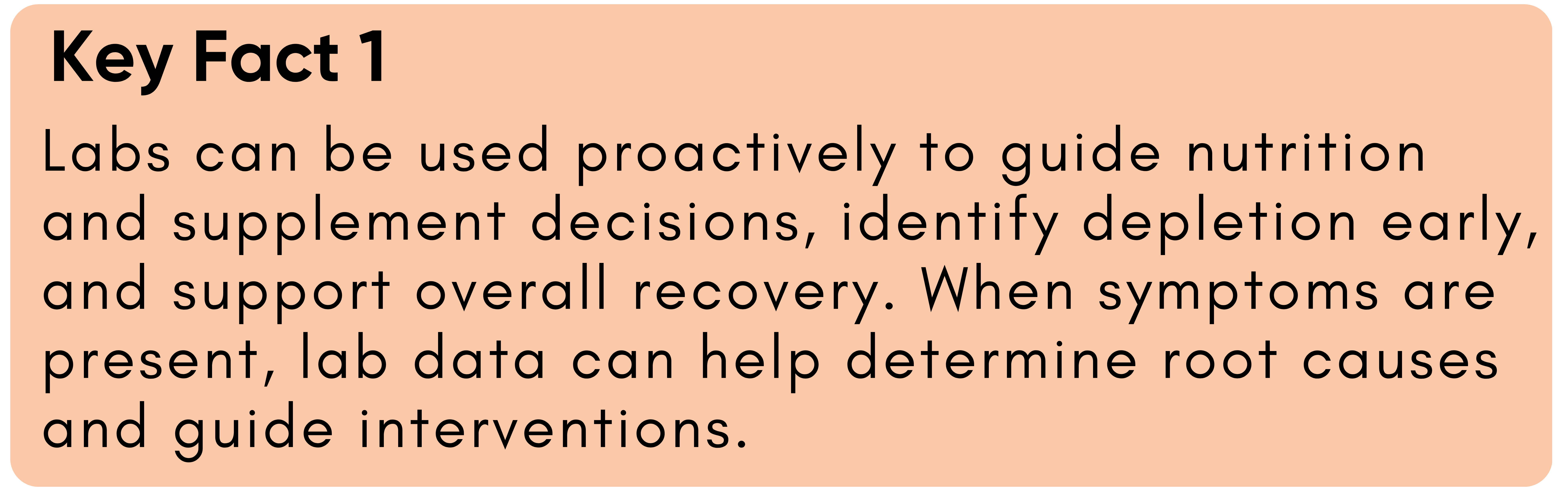 2. Labs can be used proactively to guide nutrition and supplement decisions, identify depletion early, and support overall recovery, rather than relying solely on generalized postpartum recommendations.